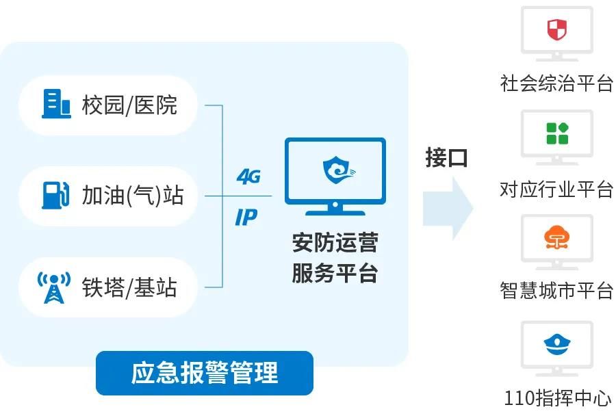 根據反恐法,安防運營(yíng)服務(wù)中心是社會(huì )應急管理系統的一個(gè)基石,通過(guò)多種網(wǎng)絡(luò )通訊,接收校園、石化加油站、社會(huì )各公共區域等緊急一鍵報警信息,在報警同時(shí),及時(shí)查看現場(chǎng)視頻圖像,并發(fā)起語(yǔ)音對講,及時(shí)遏制犯罪事件發(fā)生,同時(shí),這些緊急報警事件也將應用網(wǎng)絡(luò )在教育局管理平臺、社會(huì )綜合治理管理平臺、智慧城市管理平臺上進(jìn)行融合。在互聯(lián)網(wǎng)條件下,一點(diǎn)報警,多方接收,資源共享,成果共享,共建新時(shí)期社會(huì )文明