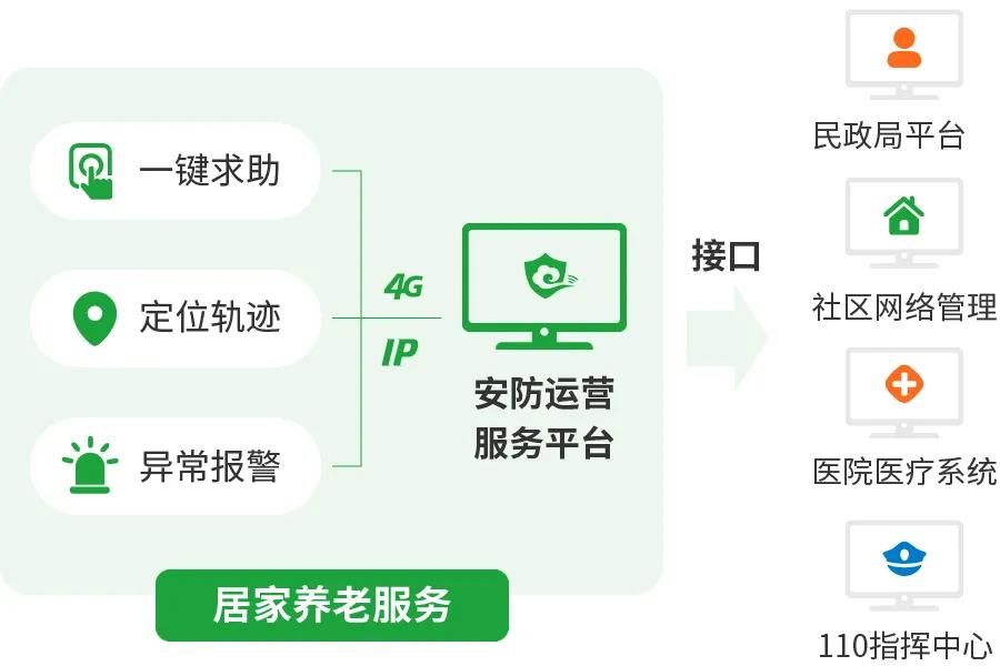 居家老人的活動(dòng)軌跡、一鍵求助將通過(guò)各種網(wǎng)絡(luò )通訊方式報送到報警運營(yíng)服務(wù)中心,此時(shí),中心將根據老人的需求給予及時(shí)的幫助,同時(shí),此信息也可以快速對接到社區網(wǎng)格管理系統平臺、民政局服務(wù)平臺