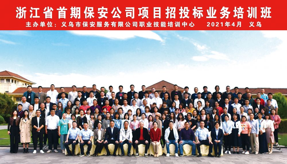 4月21日下午,浙江省首期保安公司招投標業(yè)務(wù)培訓班在義烏開(kāi)班。浙江省保安協(xié)會(huì )副會(huì )長(cháng)王暉、副秘書(shū)長(cháng)王曉蕾,金華市保安協(xié)會(huì )會(huì )長(cháng)陳滋政,義烏市公安局治安大隊龔彬彬及義烏市保安服務(wù)有限公司總經(jīng)理萬(wàn)劍出席開(kāi)班式,義烏保安公司職業(yè)技能培訓中心總經(jīng)理何淵主持。全省70余家保安公司共140余人參訓。