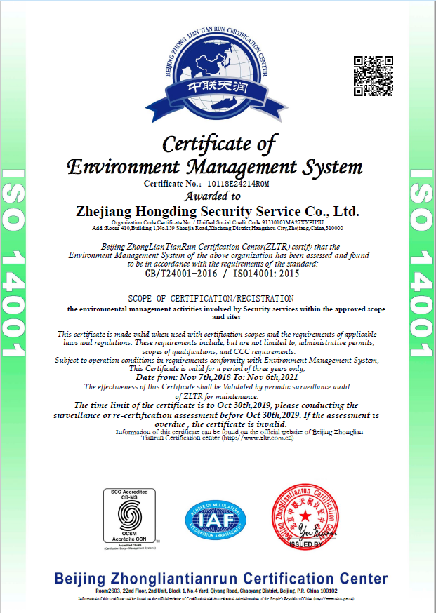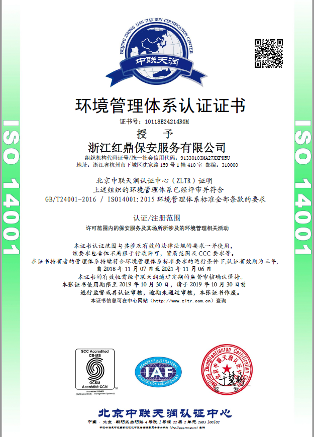 環(huán)境管理體系認證證書(shū)