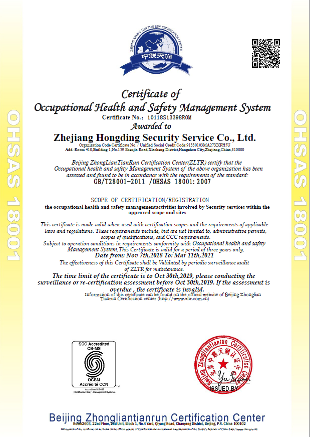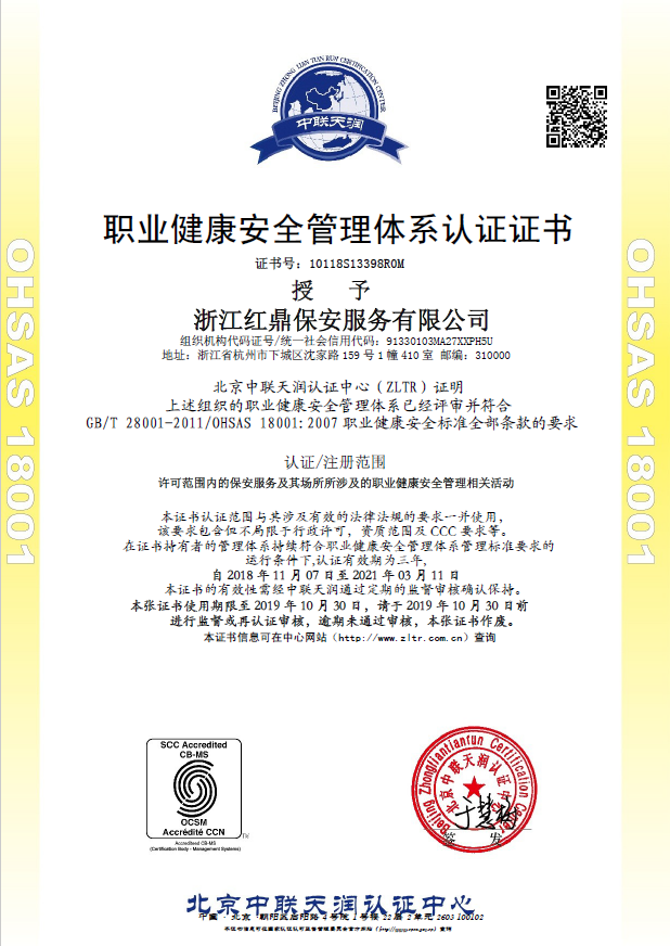 職業(yè)健康安全管理體系認證證書(shū)