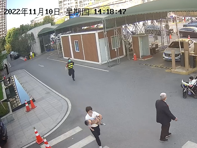 11 月 10 日 14 點(diǎn) 18 分,正在東門(mén)一道口站崗的保安黃政發(fā)現一位抱著(zhù)孩子的奶奶,神色慌張地問(wèn)怎么去急診。