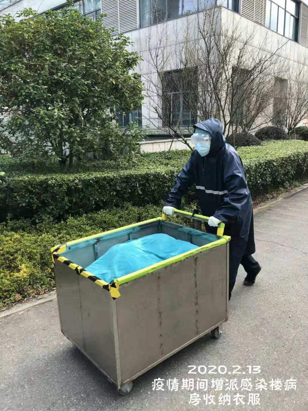 2020年2月4日,我司駐“浙江大學(xué)醫學(xué)院附屬第四醫院”項目部接到院方通知:院內洗衣房需前往“感染樓”留觀(guān)病房去收取換洗的床單、被套、病患服等織物,因疫情期間原洗衣房員工無(wú)法前往收取,故需要我項目部提供幫助。