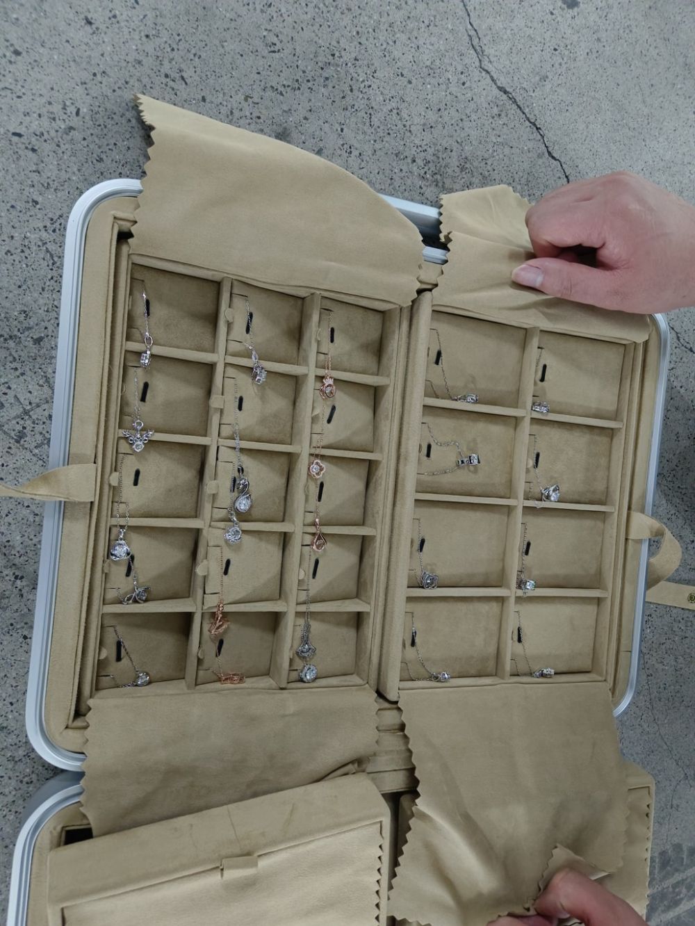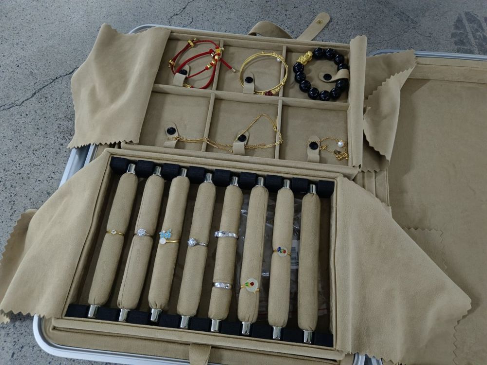 4月2日凌晨3點(diǎn)左右,紅鼎安保駐杭州蕭山國際機場(chǎng)GTC交通營(yíng)運中心項目B2層網(wǎng)約車(chē)上客點(diǎn)隊員虞衛娟,在例行巡查時(shí),發(fā)現場(chǎng)內有個(gè)遺失的銀白色的箱子,上前查看后,發(fā)現箱子內有黃金、戒指等貴重物品,虞衛娟當即報警。