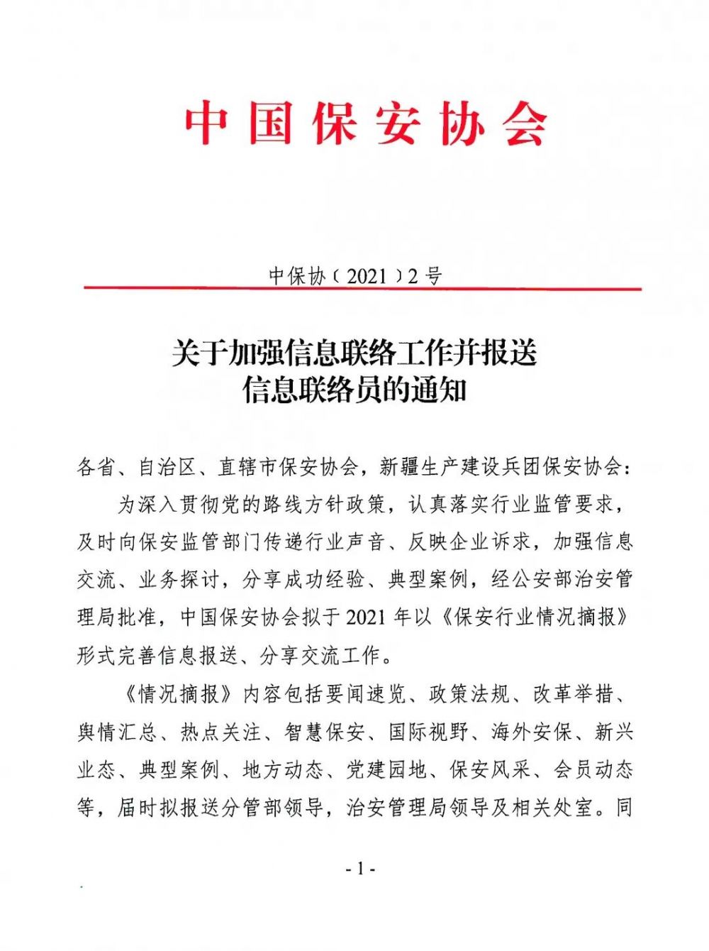 中國保安協(xié)會(huì )關(guān)于加強信息聯(lián)絡(luò )工作并報送信息聯(lián)絡(luò )員的通知